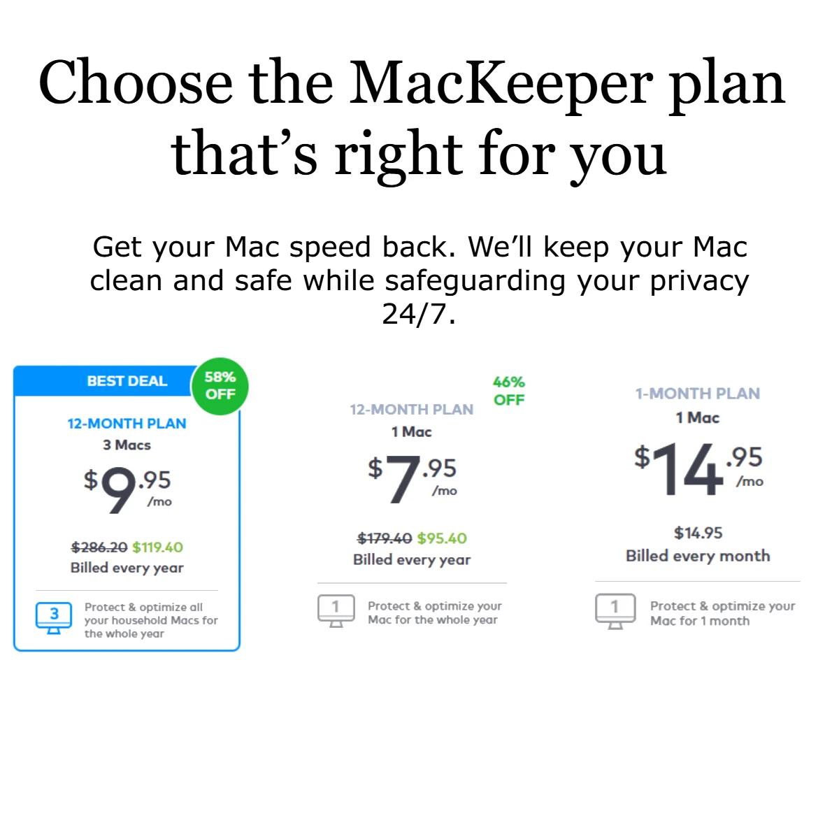 Great for short-term use or testing MacKeeper’s full features.